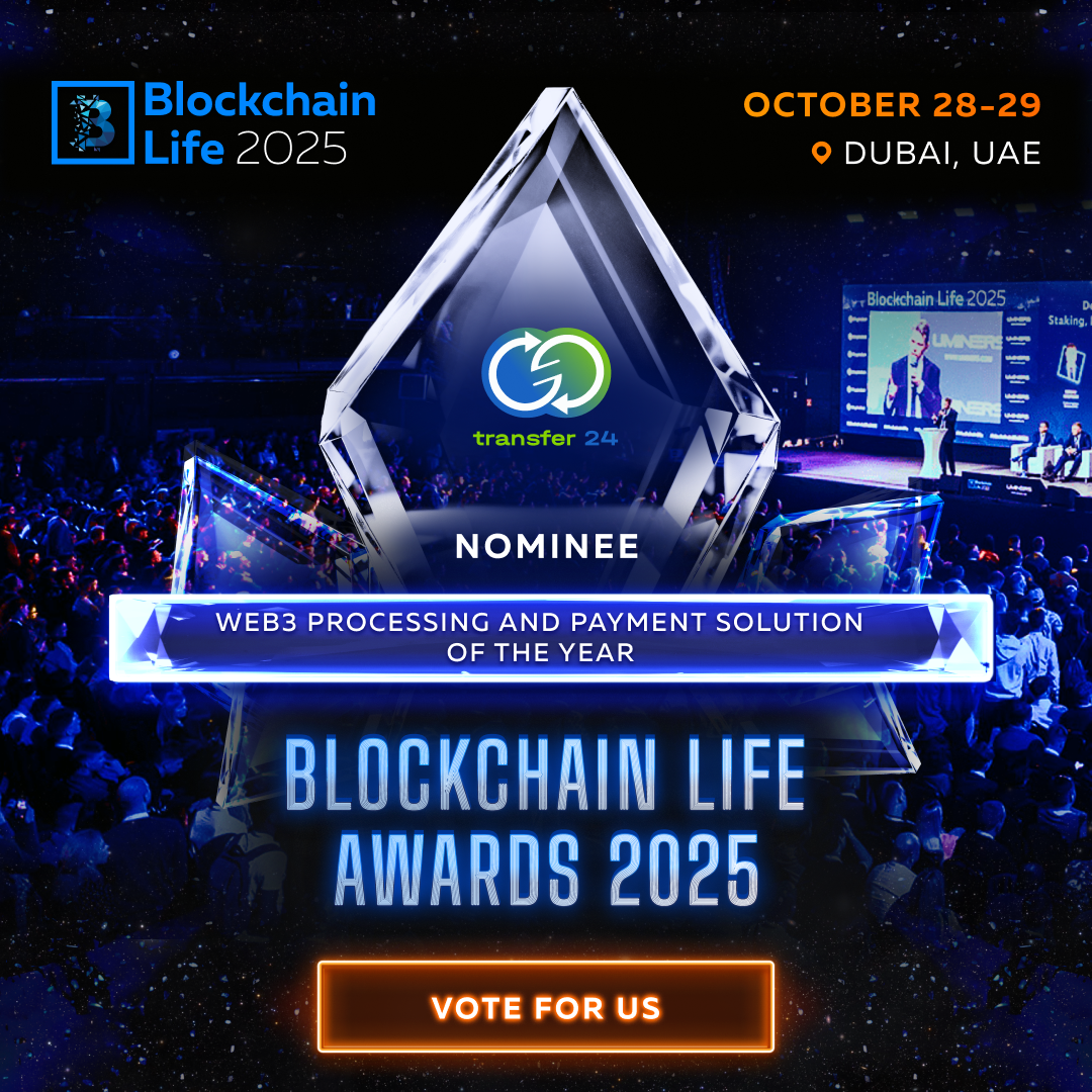 Transfer24.pro номинирована на премию Blockchain Life Awards 2025 в номинации WEB3 PROCESSING AND PAYMENT SOLUTION OF THE YEAR Голосуй до 24 октября…